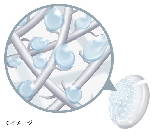 繊細に編まれたような特殊構造「アクアホールドテクノロジー」を採用。高分子で形成された網目と高分子鎖が水分をキャッチして逃さず、レンズのうるおいをキープします。