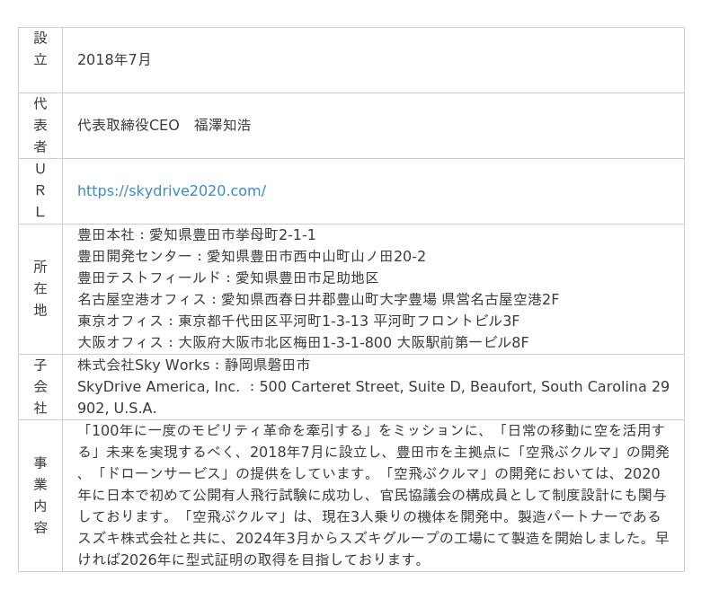 ※3 当社プレスリリース:『空飛ぶクルマ』を開発する SkyDrive(スカイドライブ) 世界初披露の機体「有人機 SD-03」で、公開飛行試験を成功 https://skydrive2020.com/archives/3506