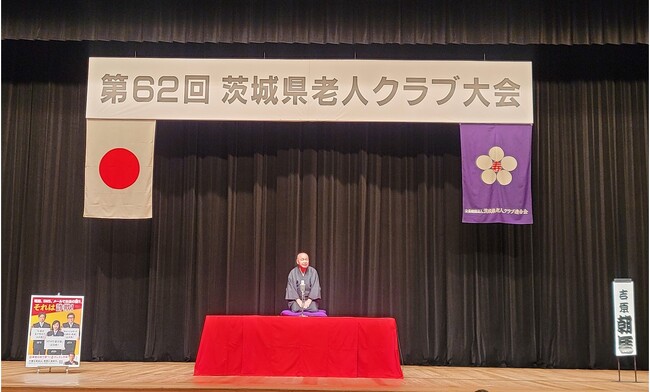 この度、特別防犯支援官の吉原朝馬氏が、第62回 茨城県老人クラブ大会に出演し、オリジナルの詐欺落語「詐欺に喝!(勝つ)」を披露しました。