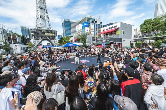 会場は、名古屋のランドマークであるテレビ塔(現・中部電力 MIRAI TOWER)の真下という絶好のロケーション。ケンドリック・ラマー、テイラー・スイフト、エド・シーランなど誰もが知る洋楽ヒットソングから、千葉雄喜、YENTOWN、¥ellow Bucksなど人気のジャパニーズ・ヒップホップ、新しい学校のリーダーズ、Number_iといった最新のJポップまで、幅広い音楽に合わせてヒップホップ、ハウス、ロッキングなど多様なジャンルのストリートダンサーたちが熱いパフォーマンスを披露し、会場を沸かせました。