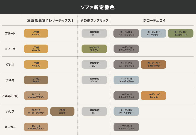 新生地コーデュロイの登場にあわせて、これまでの定番色が変更になります。
