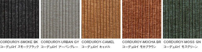 新しいコーデュロイ生地は全5色展開(スモークブラック/アーバングレー/キャメル/モカブラウン/モスグリーン)。Easy Life(イージーライフ)や Knot autiques(ノットアンティークス)、NOR(ノル)などブランドごとに展開色が異なります。