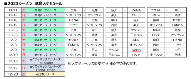 「eBASEBALLプロスピAリーグ」2023シーズン スケジュール