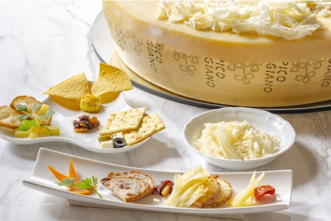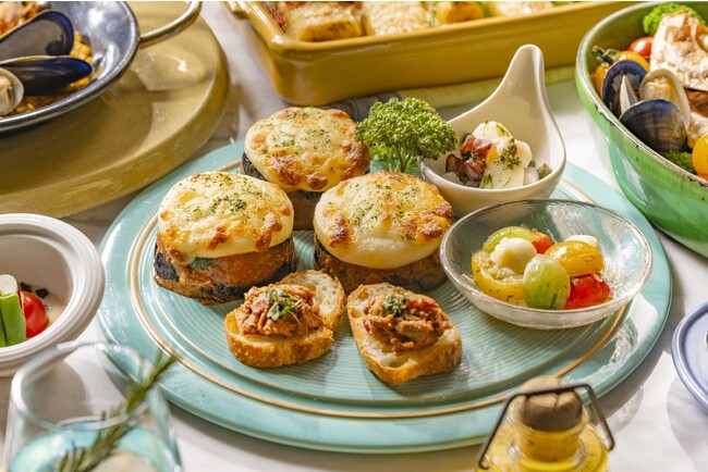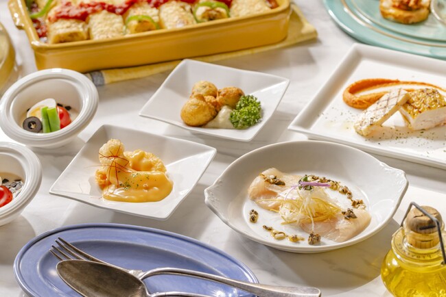 世界中から多くの人々が訪れる憧れの地であり、温暖な気候と実り豊かな土壌に恵まれ、美しい海に面した地中海エリアの個性豊かなお料理の数々を、新料理長に就任した當間 元(とうま はじめ)がご用意いたします。カラスミパウダーと“貴族のオリーブオイル”と称されるスペインのオリーブオイルで食べ比べる「地中海産マグロの食べ比べ」や、ナスやズッキーニ、ジャガイモをミートソースやホワイトソースで重ねて焼いた、ギリシャを代表する家庭料理「ムサカ」、魚介そのものの味わいをニンニクやオリーブオイルで引き出したイタリアの「アクアパッツア」は、テーブルで出来立てをお召し上がりいただけます。また、スペイン最高品質の生ハム「ハモンセラーノ」は、原木からダイナミックにカッティングしてご提供いたします。1000年以上の歴史を持つ「ロディジャーノチーズ」は、イタリアの4つの村でのみで生産されている希少性の高いチーズです。丸ごと塊でご用意する「ロディジャーノチーズ」は、チーズそのもののミルクの風味と香ばしさを味わうだけでなく、薄くスライスしてパスタやピザにたっぷりのせてもお楽しみいただけます。他にも、ギリシャの国民的チーズ「フェタチーズ」やクリームチーズに数種類のスパイスを練り込んだ モロッコの「カシェール」など、珍しいチーズをワインやお料理と共にご堪能ください。デザートには、日本でも人気のスペインの「バスクチーズケーキ」やクロアチア風プリン「ロジャータ」やサクサクの「チュロス」など、地中海地方ならではのラインナップでご用意しております。伝統ある食文化が根付く地中海エリアを旅するような美食と美酒の数々を、ここ横浜ベイシェラトンホテルでご家族や気の合う仲間と是非ご体験ください。