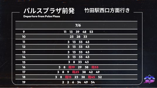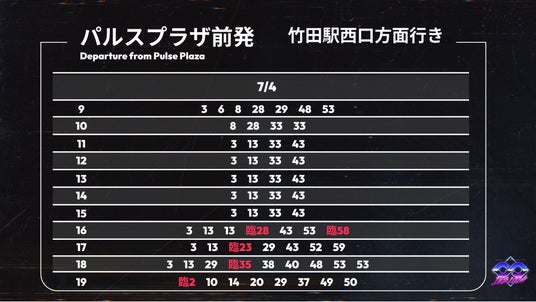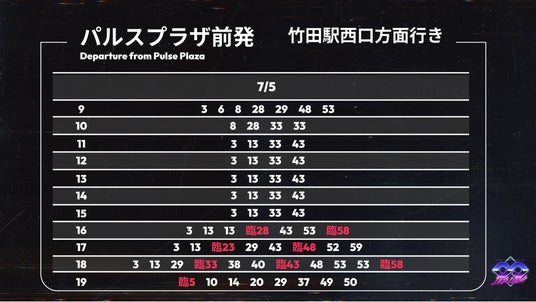 ・上記の本数は1時間に3本~5本程度の運行となります。
