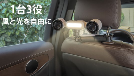 2.3WAYスタンドでどこでも涼しさを。愛車のムレ対策やベビーカーへの設置、モニターへの取付も可能