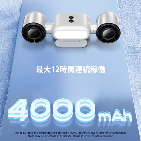 Memo Fan(メモーファン)は、角度自由な2つのファンヘッドで、必要な場所をピンポイントに送風できる新発想のダブルファン。