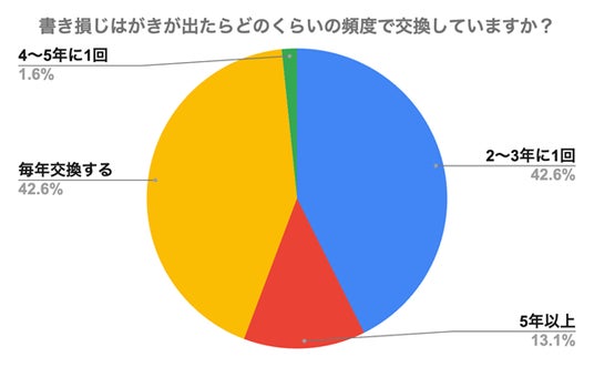 書き損じはがきの交換頻度、毎年派と2~3年派が同率トップに