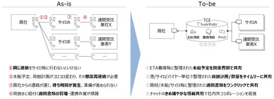 TGIでは、商社とサイロ会社間の情報連携にかかる時間を削減するため、以下の機能を提供します。
