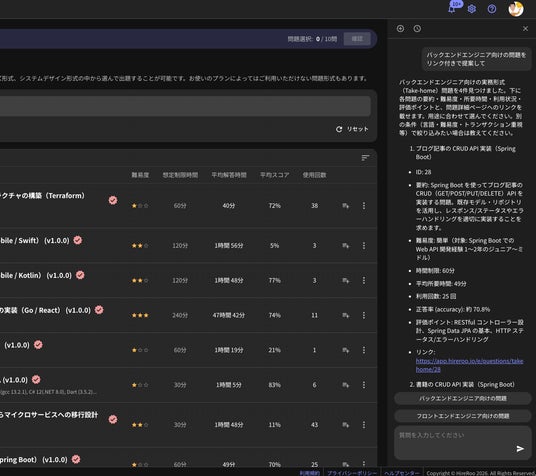 株式会社ハイヤールー(本社:東京都渋谷区、代表取締役:葛岡宏祐)は、ビッグテック企業水準の採用選考を、誰でも簡単に導入できる「Skill Interview」に、AI問題選定機能をリリースしました。この機能は、「Skill Interview」にある約300問のスキルテストから、評価したいスキルや人材像を自然言語で入力することで、目的に合致した最適な問題セットを提案します。
