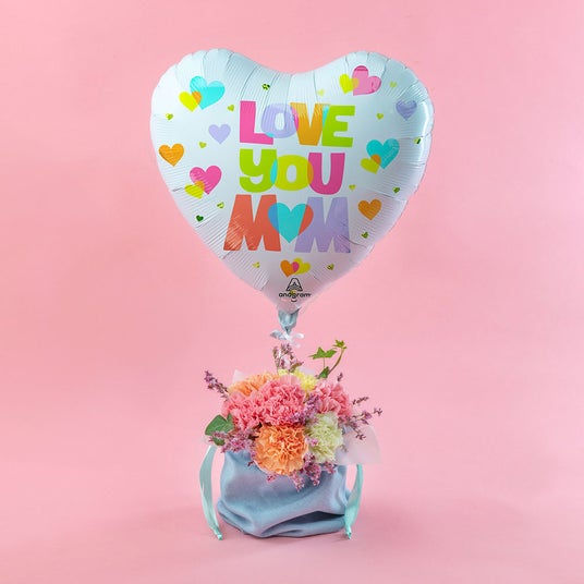 バルーン「LOVE YOU MOM」とそのまま飾れるブーケ 7,700円(税込)