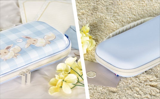 Nintendo Switch(TM) 2 とゲームカードを収納できる、2種類の材質を使用したハイブリッド構造のポーチです。もふっとしたタッチのイーブイがあしらわれたデザインです。2025年9月発売予定。