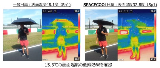 SPACECOOL日傘は、ゼロエネルギーで冷却できる新素材「SPACECOOL」を使用しています。