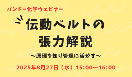 バンドー化学株式会社(本社:兵庫県神戸市)は、ウェビナー「伝動ベルトの張力解説~原理を知り管理に活かす~」を開催いたします。