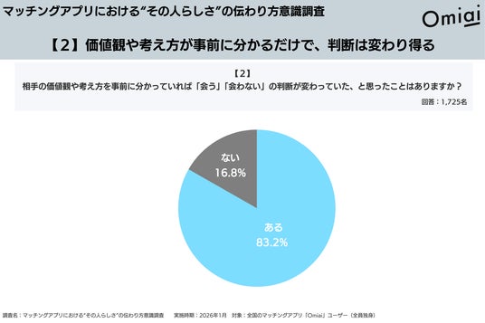 当社が実施したユーザー調査※1では、プロフィールだけでは相手の“その人らしさ”が伝わりにくいと感じる人が多く【1】※2、そうした層ほど「会う/会わない」の判断が難しいと感じる傾向が確認されました【2】※2