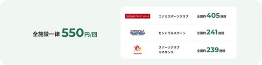 特徴1.:大手ジム3社を1回550円で気軽に利用