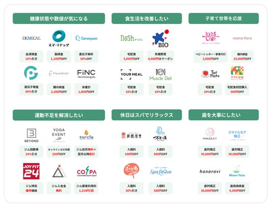 - 健康診断や人間ドック、宅配健康食など幅広い健康支援クーポンも利用可能。場所や働き方に関わらず、全従業員が自分に最適な健康支援を選べる環境を実現できます。