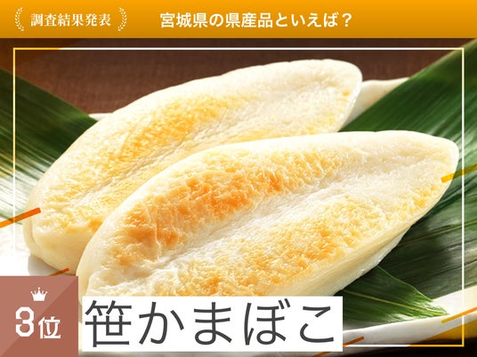 約650人の宮城県ファンに「宮城県の県産品といえば?」をアンケート調査したところ、1位「牛タン(312票)」、2位「ずんだ(105票)」、3位「笹かまぼこ(94票)」という結果になりました。