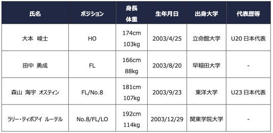 この度、2025-26シーズンのアーリーエントリー選手である4名の新加入選手を下記の通りお知らせいたします。
