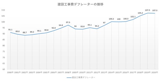 マンション価格の上昇要因を正しく理解するうえで、注目したい指標が「建設工事費デフレーター」です。