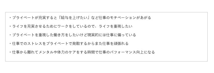 プライベートを充実させることの重要性について様々なコメントがありました