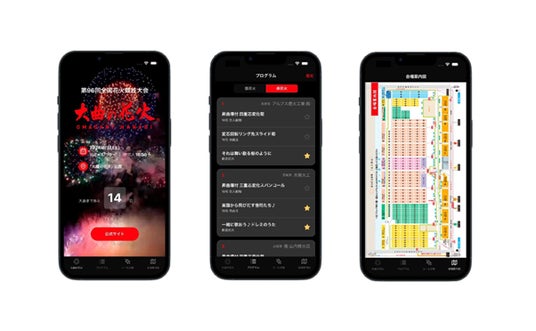 大曲の花火公式アプリは、「第96回全国花火競技大会」でのご利用に合わせて、8月26日より所定のサイトでダウンロードによる提供が開始されています。また、本アプリケーションを提供する期間は2025年3月末までを予定しています。