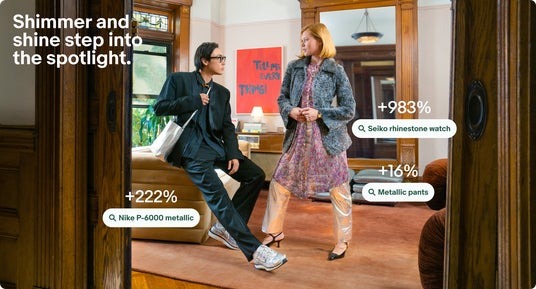 ラインストーン付きのセイコーの腕時計は検索数が+983%、Nikeのメタリック「P-6000」スニーカーも+222%と大きく注目を集めています。また、Y2K(Year 2000)リバイバル(1990年代後半~2000年代後半に流行したファッションやカルチャーが、現代のZ世代を中心に再燃するトレンド)の影響もあり、メタリックパンツも再びトレンドに(+16%)なっています。