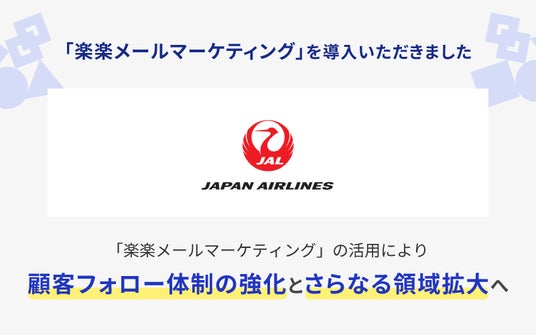 株式会社ラクス(本社:東京都渋谷区、代表取締役:中村 崇則)が提供するメールマーケティングサービス「楽楽メールマーケティング」(旧名称:配配メール)を、日本航空株式会社 ソリューション営業推進部 教育事業室(本社:東京都品川区、代表取締役社長:鳥取 三津子)が導入いたしました。