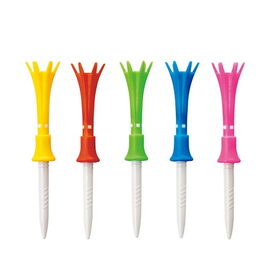ダイヤゴルフの『トマホークティー』は、国内ゴルフ市場において5年連続売上1位※を達成しており、日本の多くのゴルファーに使われているゴルフティー(ティーペグ)です。人気の秘密は、ティーアップ時のボールの高さが自在に調整できて打ちやすいことと、柔らかい素材の首振りヘッドによってインパクト時の抵抗が少なく飛距離ロスを解消できることです。