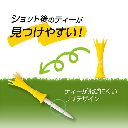 ティーグラウンドに挿さる下部には、リブが入っています。リブが入っていることで、ティーショット時に、ティーが抜けにくくなっているのでティーを探しやすい設計になっています。