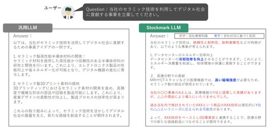 ストックマーク株式会社(本社:東京都港区、社長:林 達、以下「ストックマーク」)はこのたび、日本ガイシ株式会社(本社:愛知県名古屋市、代表取締役社長:小林 茂、以下「日本ガイシ」)と、日本ガイシ製品や技術の新規用途探索の高精度化・高速化を目的とした実証実験を開始しました。
