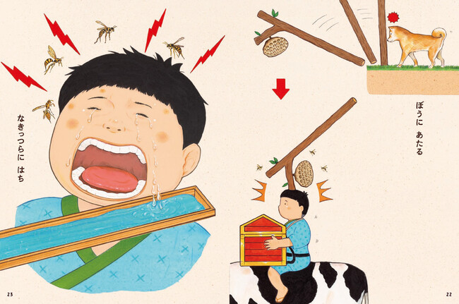 宝物を届ける道中のできごともすべてことわざや慣用句で描かれ、最後はまた、「犬も歩けば棒に当たる」に戻っていきます。