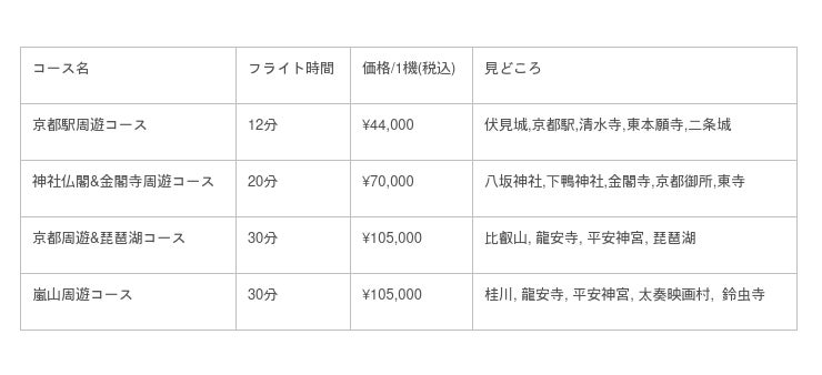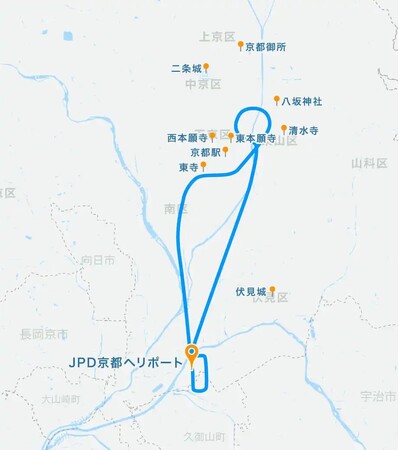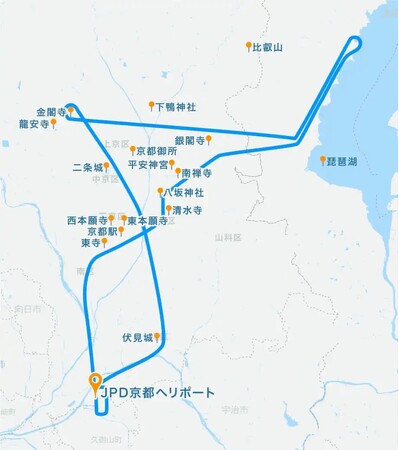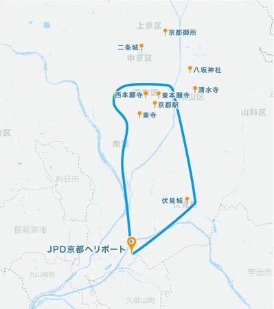 この度、JPD京都ヘリポート(京都駅から電車とタクシーで約25分)と八尾空港(大阪中心部から電車とタクシーで45分)から京都市内の金閣寺や清水寺、二条城、龍安寺をはじめとする神社仏閣や世界遺産を空から巡ることができるヘリコプター遊覧の運航を開始いたします。