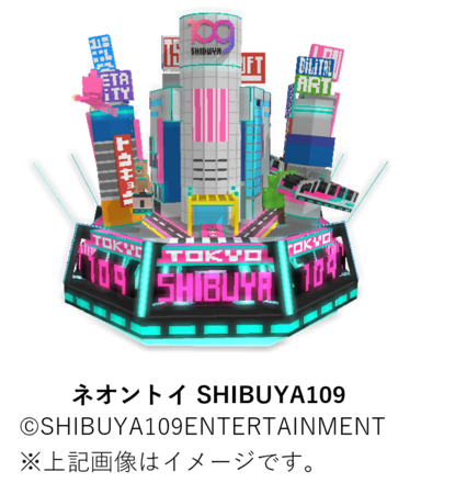 また、今後販売予定のアイテムとしては、SHIBUYA109を中心に渋谷を表現したNFTアイテム「ネオントイSHIBUYA109」等も販売してまいります。