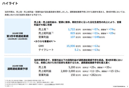 ■2024年7月期 第3四半期連結業績ハイライトおよび今後の見込み