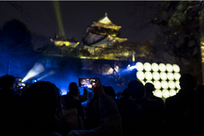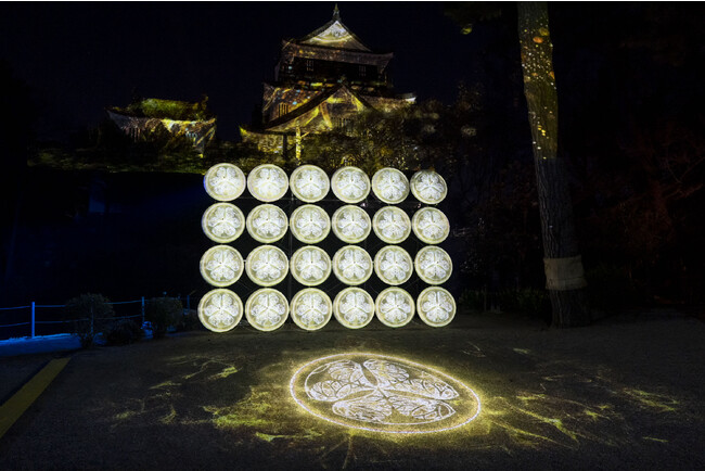 徳川家康生誕の地・岡崎城の清海堀沿い約60mにわたる長さ2mのLEDバー39本による光と音の演出と、和傘を組み合わせた幅約6メートル・高さ約4メートルのスクリーンに投影した和柄や冬をモチーフとしたプロジェクションマッピング映像が連動。幻想的な光の空間を創出したほか、岡崎城大手門では華やかなプロジェクションマッピング映像の投影とともに地面に人の動きに反応して映像が変化するインタラクティブコンテンツを投影するなど、岡崎公園内のさまざまなスポットをデジタルライトアップで彩りました。