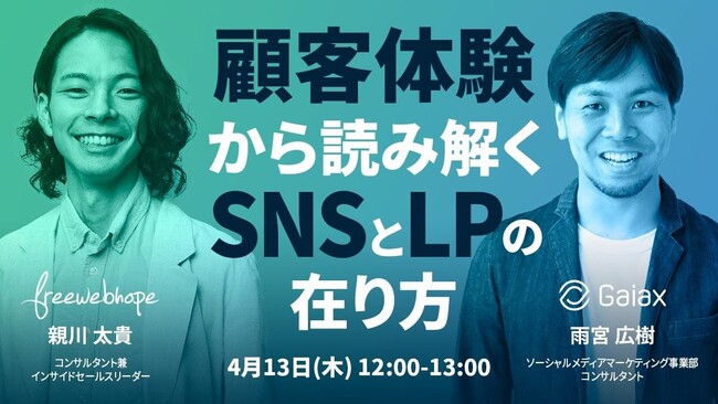 株式会社free web hope(本社:東京都中央区、代表取締役:相原ゆうき)は、無料のオンラインセミナー「顧客体験から読み解くSNSとLPの在り方」を4月13日(木)に開催いたします。