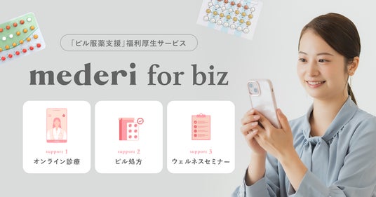 こうした社会課題に対し、mederiではスマホから簡単に受診できるオンラインピル診療サービスを軸に、法人向け福利厚生サービス「mederi for biz」を提供しています。
