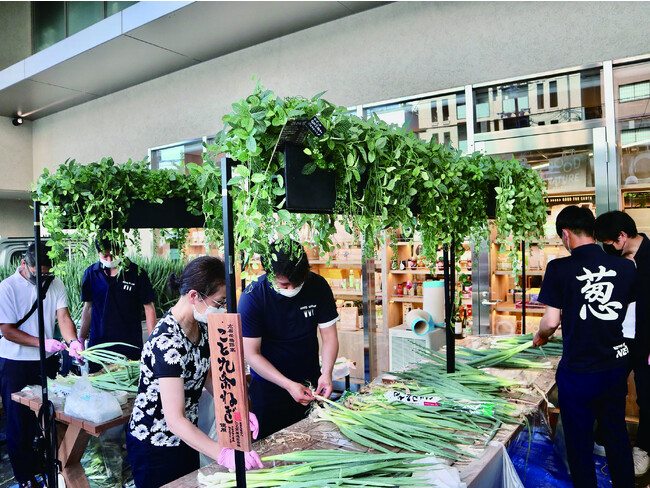 また、ねぎの皮を含めた捨てられる外の葉の部分は、製品化に適さず廃棄されてしまうものを含め、生産量全体の40%ほどにもなると言われています。これを価値ある資源として捉えている「こと京都」では、アップサイクル品への活用を進め、未来につながる九条ねぎの製品を開発しています。施設丸ごとサステナブルを掲げるGOOD NATURE STATIONで行われる人気のイベントです。