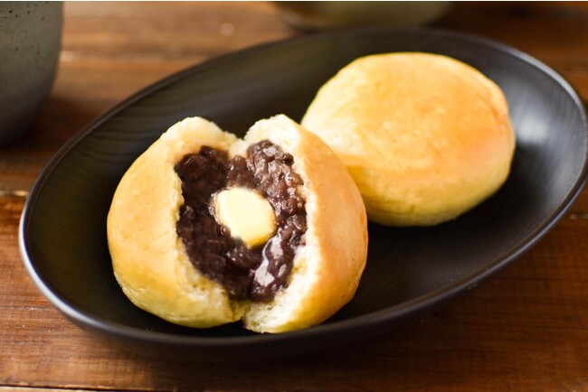 電子レンジで温めることにより、中のバターがとろけて、あんことクリーム、バターが合わさった甘じょっぱい味わいをお楽しみいただけます。
