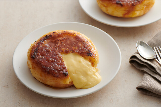 香ばしくキャラメライズされた表面にナイフを入れると、中から温かいカスタードクリームがとろけ出る、オンラインショップ限定のスイーツです。