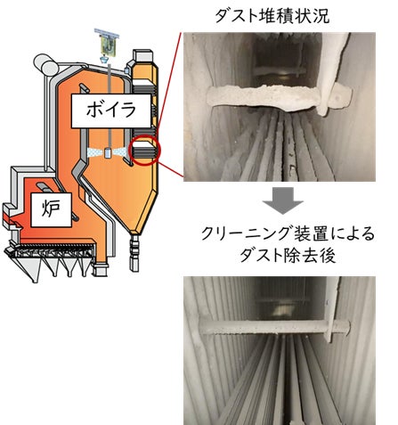 近年、廃棄物焼却施設は発電所としての機能も担っており、燃焼熱を回収し蒸気を作るボイラーの性能が重要となっています。廃棄物焼却炉において、ボイラー伝熱面へのばいじん(ダスト)付着は熱効率低下の主要因であり、その除去は施設の安定稼働および経済性確保の観点から不可欠です。