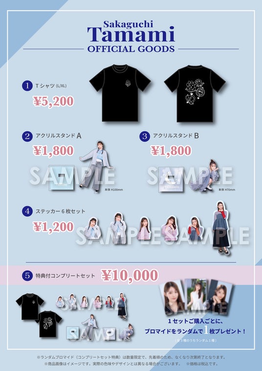 2025年3月16日(日)20:00より「阪口珠美OFFICIAL STORE」にてオンライン販売を開始いたします。会場に足を運べないファンの皆さまも、この機会にぜひご利用ください。 受注販売となりますので、お早めにご注文ください。
