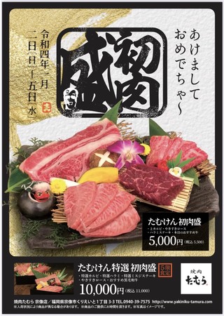 焼肉たむら、年始から張り切って営業致します!!新年にぴったりの贅沢盛をぜひ~☆
