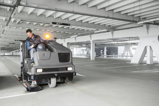 床洗浄機 B 300 R I D 搭乗式「スイーパー床洗浄機」。散水・ブラッシング・汚水 回収、ゴミ回収を担う床版の清掃に。