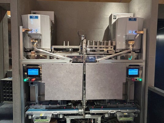 ドリンクロボット(DR-0100)のコンセプトモデル注文から人を介せずに自動でドリンクを作り、人手不足解消を実現。スタッフにレシピを教える必要がなく、教育コストの削減をサポート。何杯作っても一貫した味と濃さを提供可能です。会場で試飲できます。