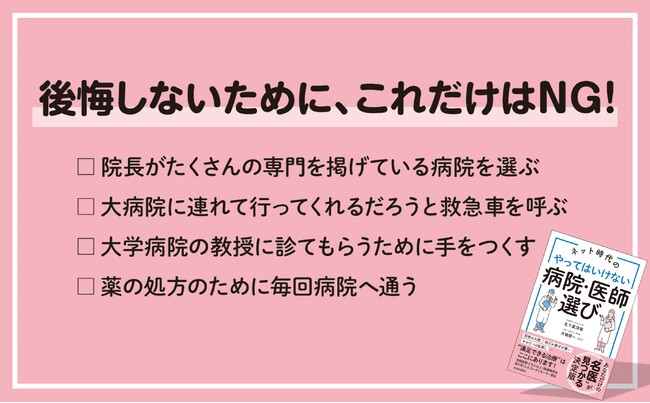 平均寿命が延びて“老後”の期間が年々長くなっていく中、「初診」で病院(医師)をどう選択するかが非常に大事。費用や時間が違ってくるばかりか、ときには生死を左右する。しかも、医師・病院選びの本は医師が書いたものが多く、その医師の専門分野や関連病院に情報が偏りがち。