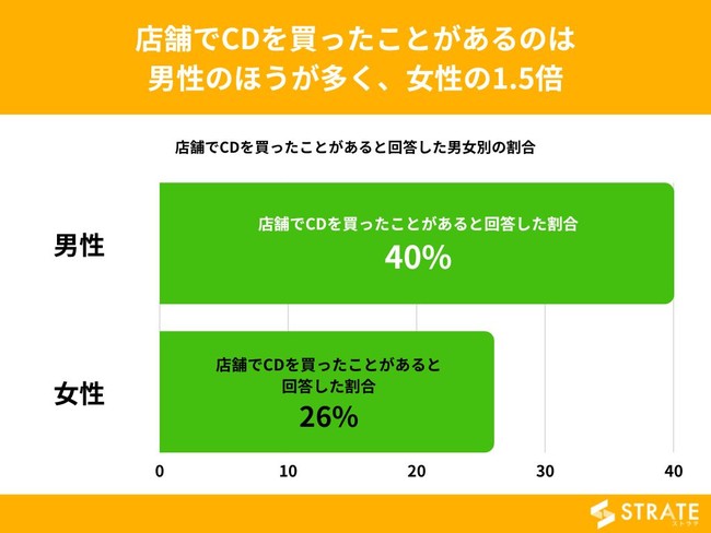 【店舗でCDを買ったことがあるのは男性のほうが多く、女性の1.5倍】