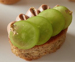 ゴルゴンゾーラチーズとサツマイモのタルト、 シャインマスカットとラディッシュ