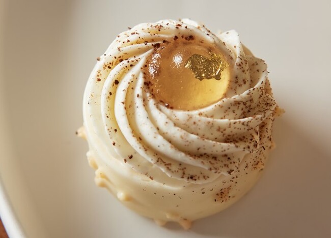 秋旬の素材の風味が引き立つ味わいの5品のセイボリーは、ホテルのバンケットシェフ久世健介が担当いたしました。「和」と「洋」の食材を巧みに使いこなし、上品な味わいと細やかなデコレーションはホテルならではの贅沢感溢れるセイボリーです。